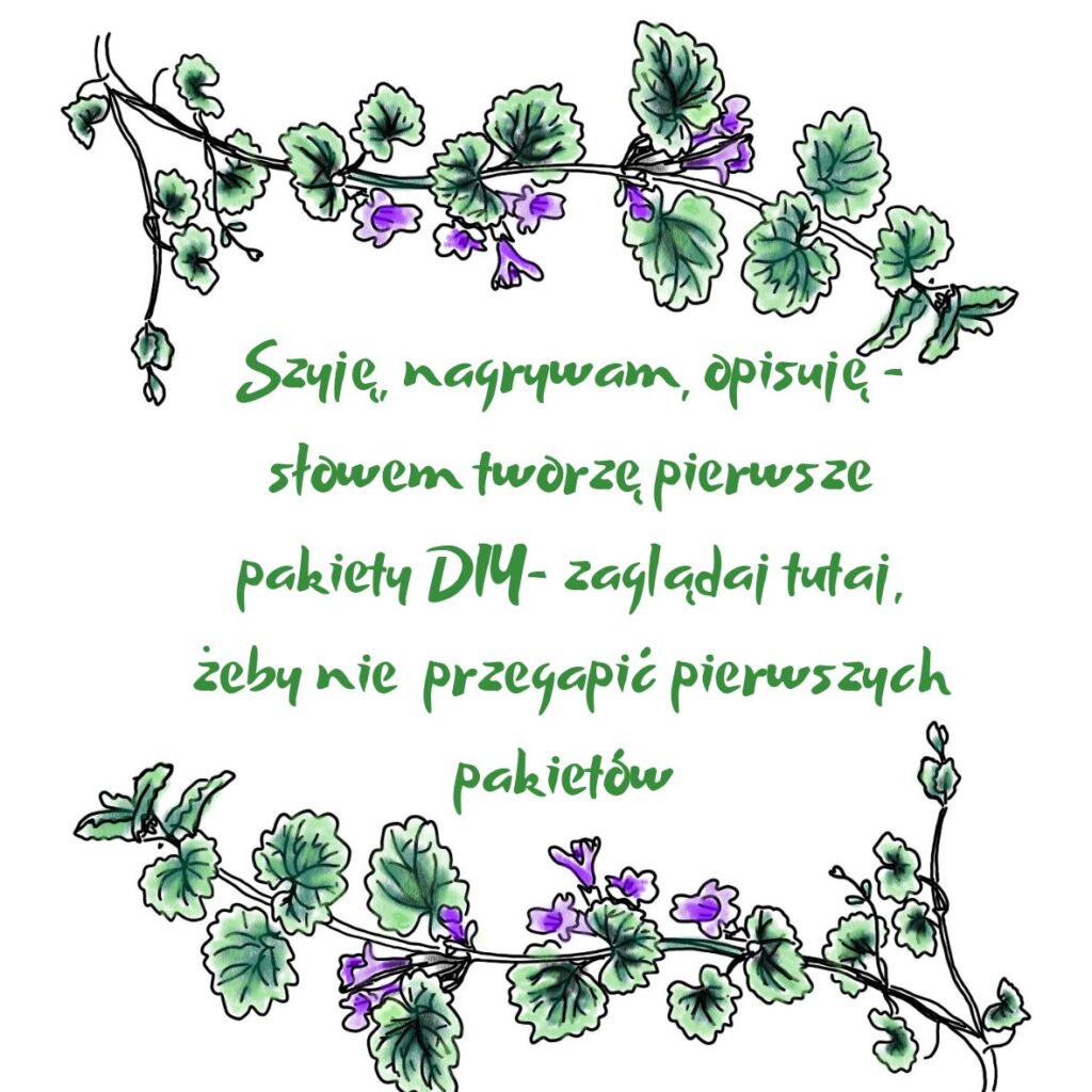 DIY- warsztaty domowe Concordia Vitae to propozycja dla tych, którzy chcą tworzyć w swoim rytmie, bez konieczności uczestniczenia w spotkaniach stacjonarnych. Innymi słowy, otrzymujesz komplet materiałów, szczegółową instrukcję krok po kroku oraz odnośnik do filmu instruktażowego. Dzięki temu możesz w dowolnym momencie rozpocząć własną przygodę z zielarstwem lub rękodziełem.